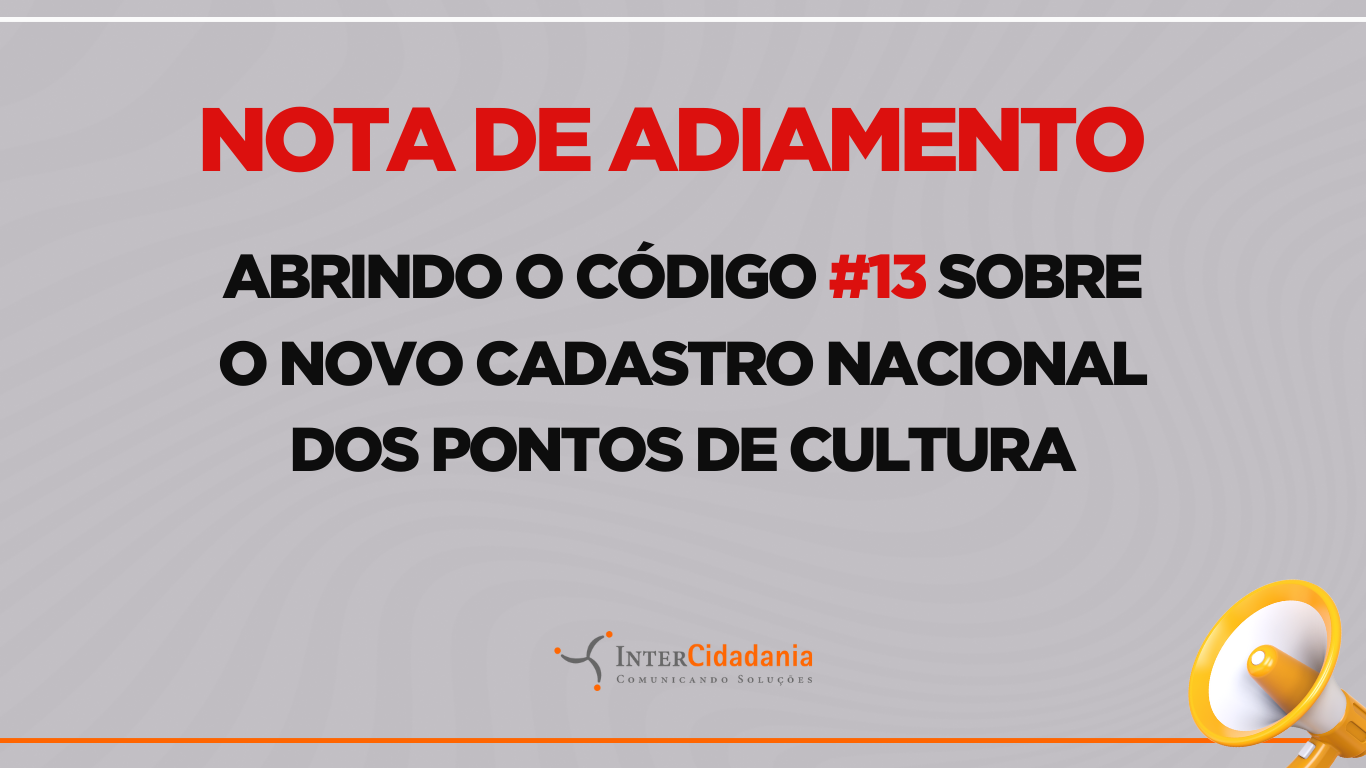 Nota de Adiamento do Abrindo o Código #13 sobre o Novo Cadastro Nacional dos Pontos de Cultura